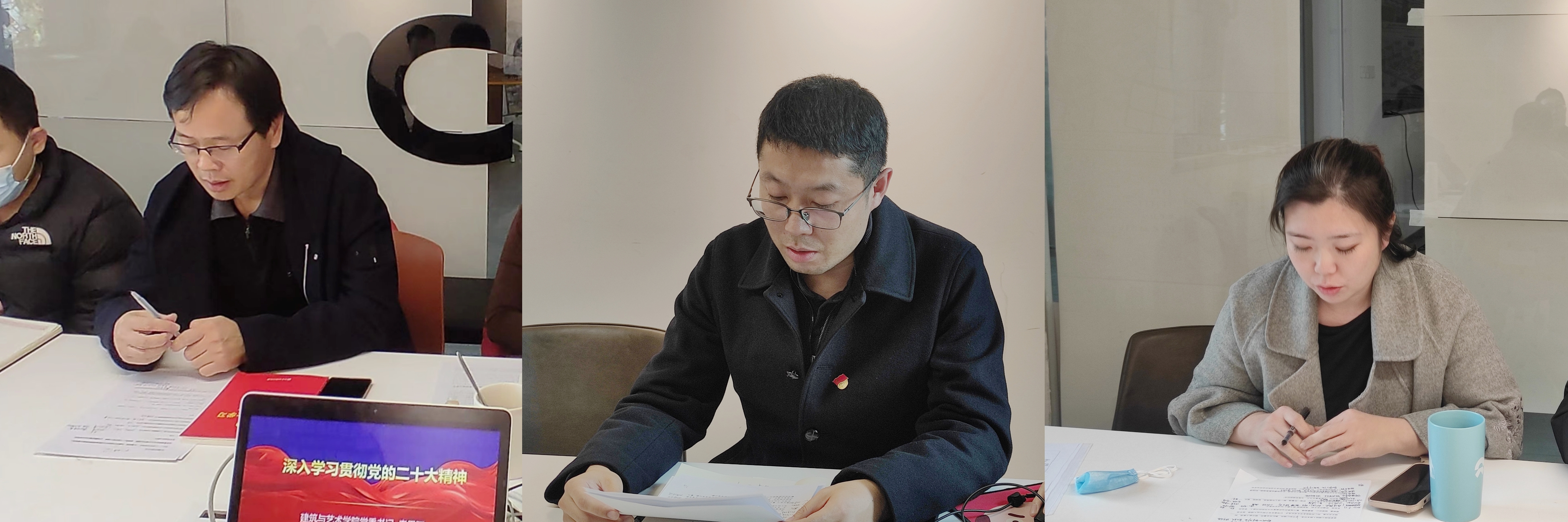 2022年11月17日,建艺学院党委理论中心组专题学习党的二十大精神,会议由学院党委书记秦思阳主持。秦思阳传达了学校党委刚刚下发的《关于认真学习宣传贯彻党的二十大精神的通知》,强调指出:学习宣传贯彻党的二十大精神,是当前和今后一个时期的首要政治任务,全体中心组成员要带头学习,要确保学深学透、入脑入心,把学习党的二十大精神转化为全院师生奋进新征程、建功新时代的强大力量。