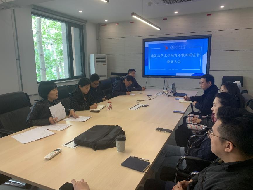 4月12日中午,建筑与艺术学院举行青年教师联谊会理事会换届大会,学院党委书记秦思阳,院长韩冰,党委副书记、副院长刘萍,党委青年委员、副院长张野,新老两届青年教师联谊会理事会成员参加会议,刘萍主持会议。