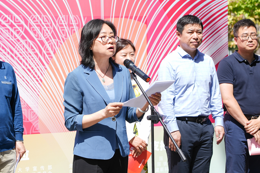 初夏的校园阳光和煦、绿树成荫。5月23日上午,主题为“赓续·弥新”的北京交通大学第十二届创意文化节开幕式在建艺学院伞亭广场精彩开幕。校党委副书记文海涛,中国铁路摄影家协会副主席兼秘书长王博轩,中国铁道博物馆党委副书记、工会主席刘恒,《铁道知识》杂志社原社长、主编魏宗燕,中建新科装饰工程有限公司党总支副书记罗阳等,北京京诚集团有限责任公司副总经理王永久等,密云区溪翁庄镇市民活动中心主任季新等,学校党委宣传部、学工部、研工部、团委、后勤集团、保卫处、外联处、就业与创业指导中心等相关单位负责人,建艺学院师生代表共同参加开幕式。