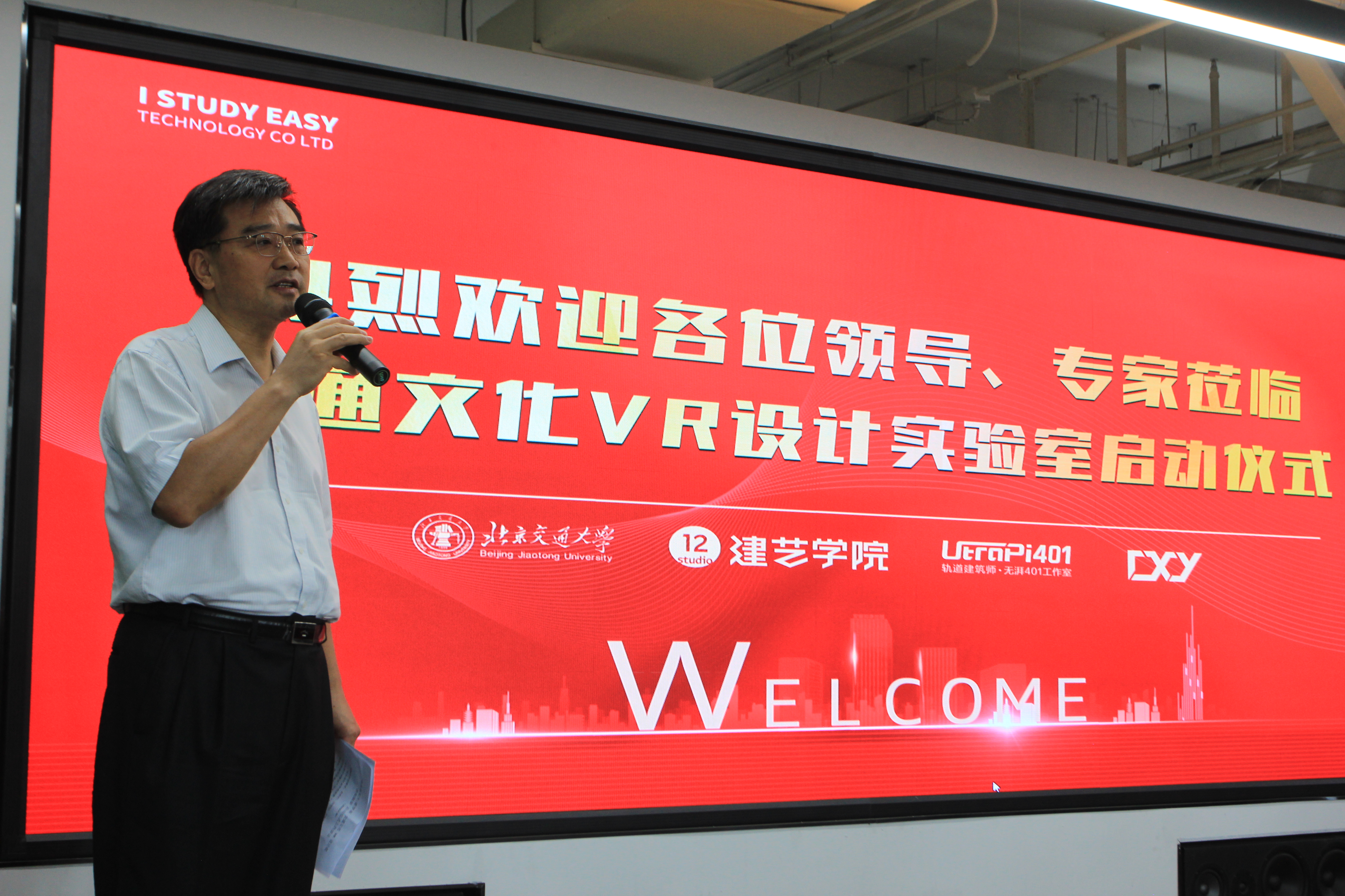 北京交大-爱学易交通文化VR设计联合实验室,是在学校和北京交通大学丰台轨道交通创新基地的大力支持与亲切关怀下,由建筑与艺术学院作为依托单位,联合四川爱学易科技公司成立的以交通文化VR设计为方向的实验室,实验室占地600平米,拥有扫描、印刷、后道加工等先进设备,总资产超过500万元,由建筑与艺术学院第12工作室团队和爱学易技术服务小组驻场运行。不但可为交通视觉设计、交通导向设计、交通规划设计、交通建筑设计等领域提供设计虚拟仿真、视觉信息采集、视觉成果输出的科研支持,还承担服务相关领域的本研实验教学、并为学科竞赛、大创、毕设提供创作支持。