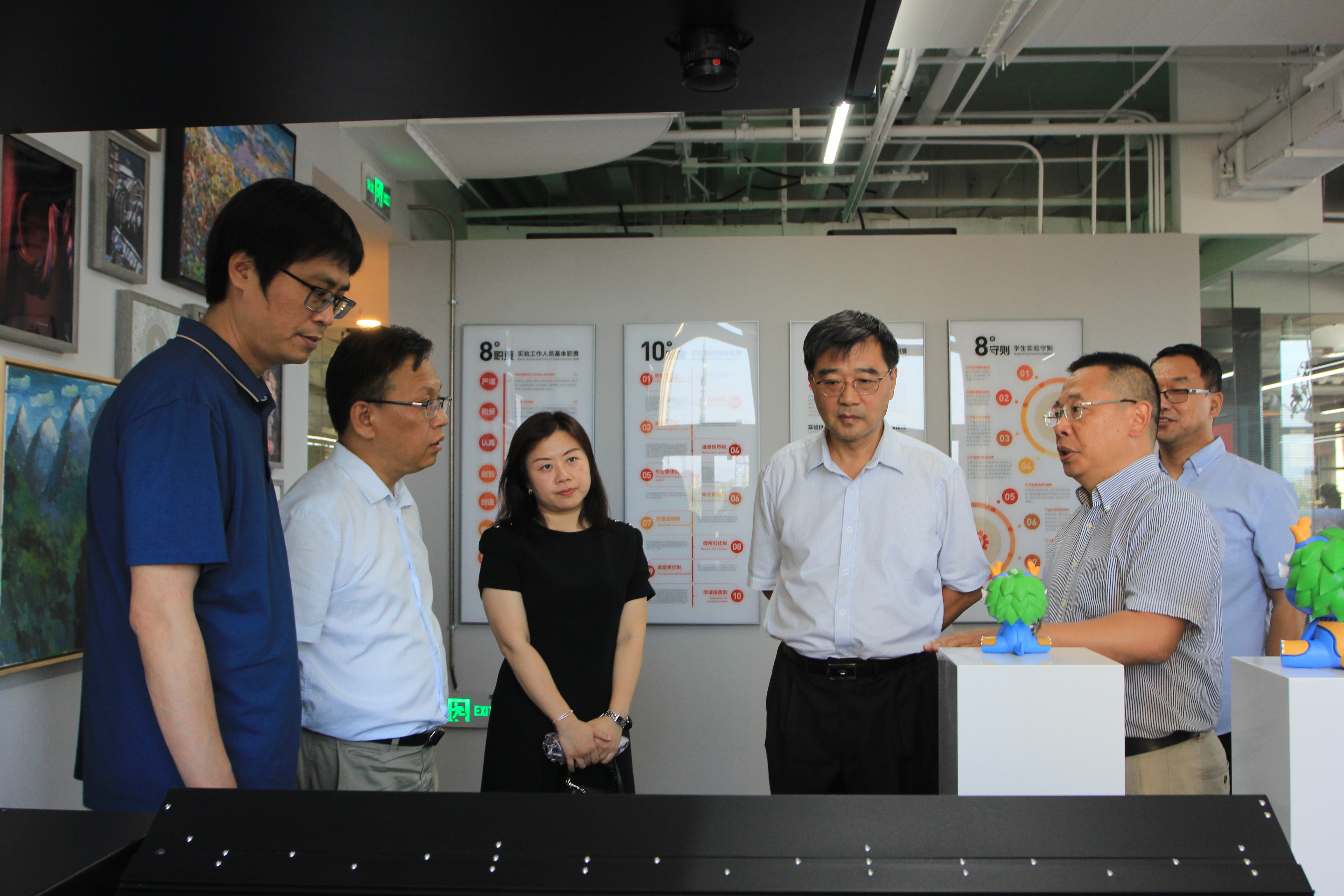建艺学院书记秦思阳、院长韩冰向校长助理吴强介绍联合实验室的筹备和建设情况