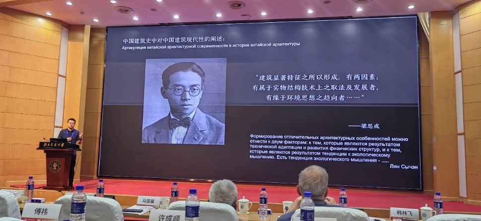 俄罗斯建筑与建设科学院外籍院士、北京交通大学建筑与艺术学院韩林飞教授做了题为《溯源中的思辨、发展中的探索、东西方的异同》的报告,回顾并反思了现代建筑百年的发展历程,提出了对建筑“本体论”的思考。