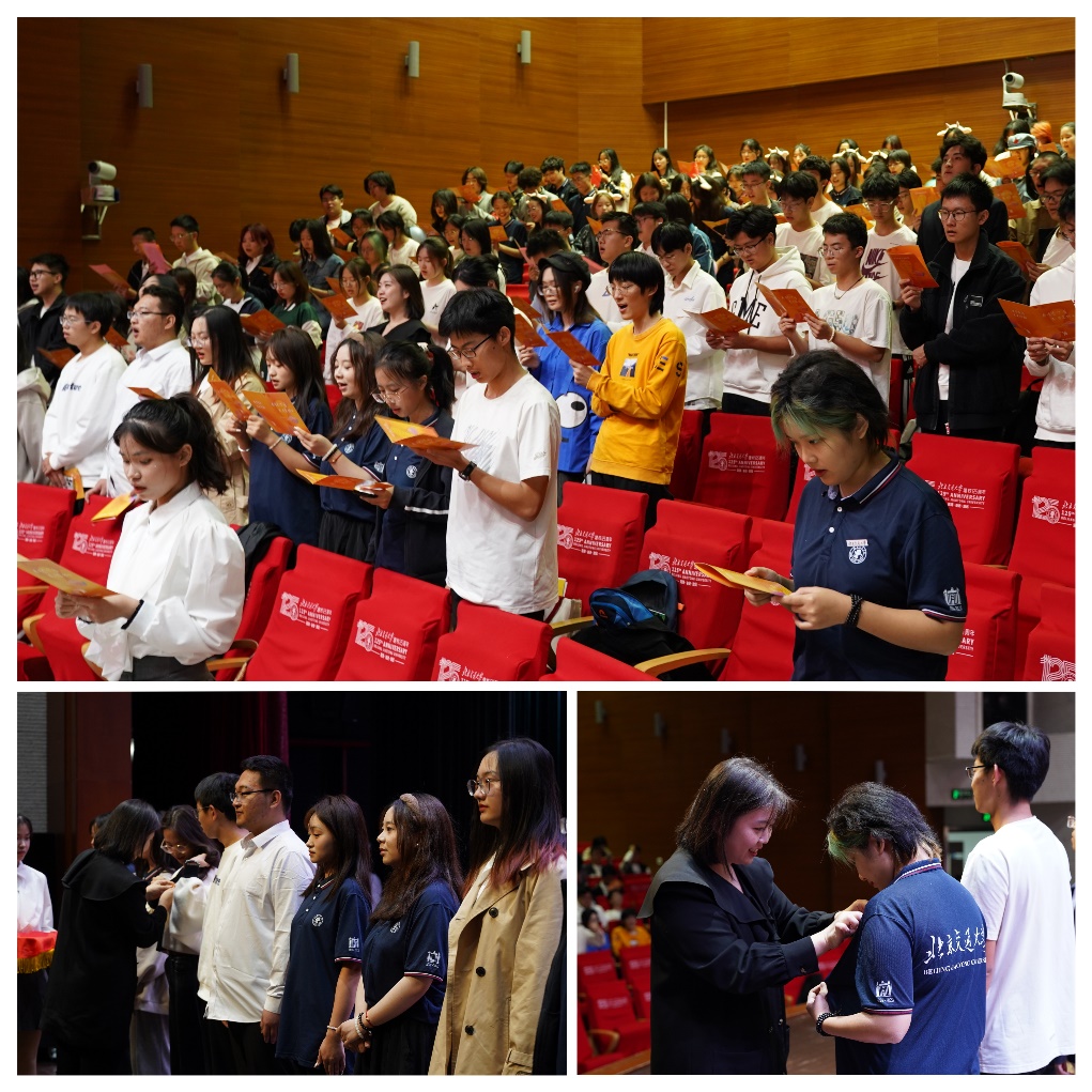 点燃热情,共筑希望。新生主题团日活动在全体师生激昂的团歌声中拉开序幕,全体师生起立共同唱响中国共产主义青年团团歌《光荣啊,中国共青团》。学工办主任张京老师为各支部代表授予团徽。