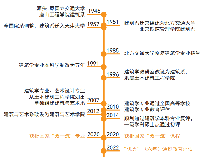 建筑与艺术学院可追溯到成立于1946年的原国立交通大学唐山工程学院建筑系,学院现有建筑学、城乡规划、环境设计、视觉传达设计和数字媒体艺术五大专业,并具有建筑学、城乡规划学、设计学硕士点。学院拥有众多知名学者,教学硬件先进完备,采用多样化的培养模式,科研实力雄厚,一批科研项目达到国内一流水平。学院拥有国家级一流本科专业4个、北京市级一流本科专业1个、国家级本科课程3门、承担国家级新文科教改项目、北京市级美育教改项目。近年来获评国家级教育教学成果奖二等奖1项,北京市教育教学成果奖一等奖1项,二等奖2项,北京本科高校产学研深度协同育人平台。