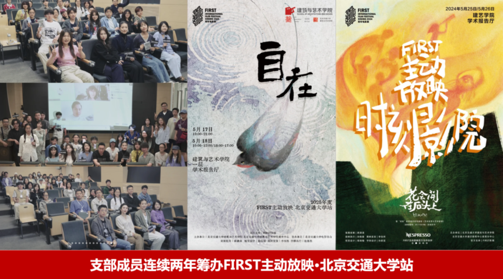 争做志愿服务的“追光者”。支部成员担任“‘益教室’乡村美育优课计划”任课教师,半年内6次赴贫困山区支教,将美育的种子播撒在紧缺又被需要的地方;支部成员连续两年举办FIRST青年电影展主动放映·北京交通大学站,从策展到落幕的辛苦付出,只为让更多青年学子拓宽专业视界,从电影中获得更多力量感。