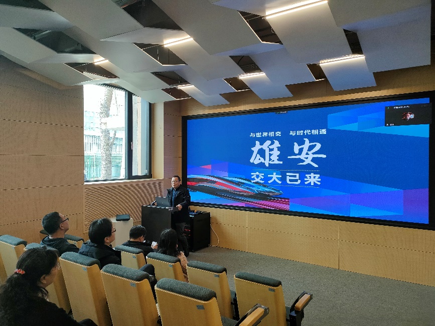 下半场的学术沙龙中,郑方教授首先介绍了雄安新校区的规划背景:以功能疏解带动高质量内涵发展,力图将雄安校区打造为高等教育改革发展创新实验区、高素质拔尖创新人才培养基础、政产学研用一体化发展示范集群。规划方案秉承雄安新区规划要求和学校十四五规划愿景,以建设“特色鲜明世界一流大学”为目标,以“思源致远·启航未来”为理念,优化创新资源配置,释放科研潜能与活力,加快学校“双一流”建设,规划科教融合校园、人文宜居校园、绿色生态校园、智慧科技校园、持续发展校园,为交大下一个百年发展打下坚实基础。之后,详细介绍了新校区规划中的五大学科组团的规划结构、建筑风貌和分期建设等方面的设计进展。