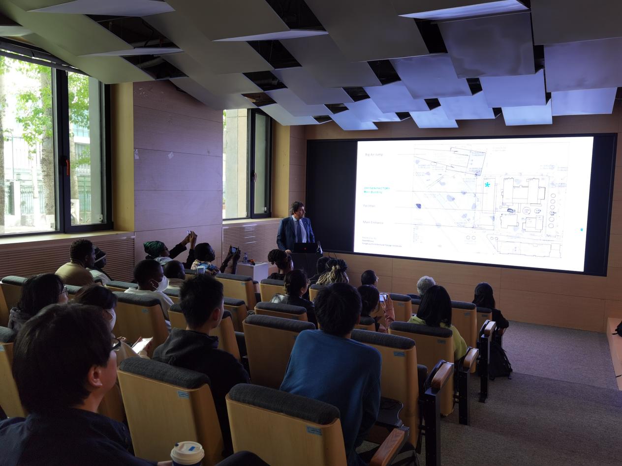 会见结束后,博明凯教授就北京冬奥会首钢园区制氧厂工业遗产改造主题做“与大师面对面”名师讲坛讲座。现场同学踊跃提问、气氛热烈。讲座结束后,佘高红、郑方、盛强等负责老师陪同参观校园及建艺学院。