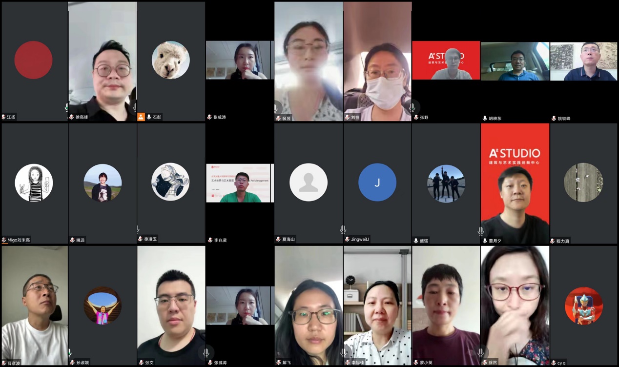 在随后召开的全体工作室任课教师线上培训环节,胡映东老师为49名工作室导师解读今年的课程教学环节与要求,着重介绍工作室团队及导师需完成的三个规定模块教学内容和组织实施流程。张野老师进行题目为《构建和谐的导学关系与高效团队》的课前培训。师生们对两场课前宣讲培训反响强烈。