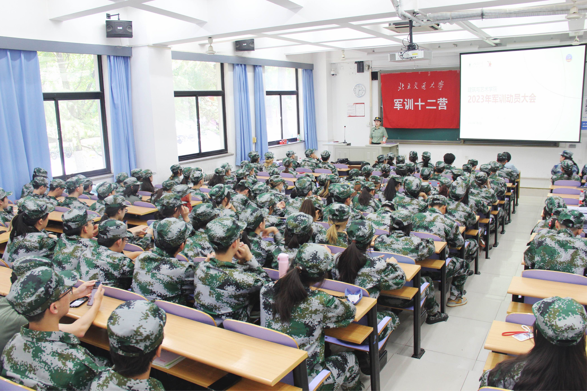 2023年7月2日下午,建艺学院在思源西楼105召开2023年本科生军训动员大会。学院党委副书记刘萍,2022级本科生辅导员张京及全体参训学生参加此次大会,会议由张京主持。
