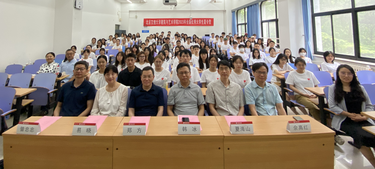 韩冰院长致开幕辞,指出北京交通大学是一所历史底蕴丰厚的百年名校,建筑与艺术学院学术氛围浓厚,发展势头良好。通过此次夏令营,希望可以加深各位同学对建艺学院的了解,同时,利用暑期时间,搭建一个学习平台,让全国的优秀大学生可以充分学习交流,增进彼此友谊。