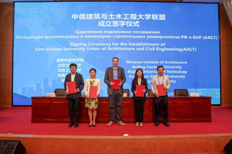 莫斯科建筑学院、北京交通大学、北京工业大学、西南交通大学、长安大学的代表共同签署了中俄建筑与土木工程大学联盟章程。前期,中俄双方经过多次协商确定了联盟章程,北京交通大学、北京工业大学、西南交通大学、长安大学成为中方首批学校,莫斯科建筑学院、俄罗斯人民友谊大学、乌拉尔国立建筑艺术大学成为俄方首批学校。中俄建筑与土木工程大学联盟的创立将为两国的建筑与土木工程等相关学科教学与科研的合作和学生之间的交流与互动提供更广阔的平台。
