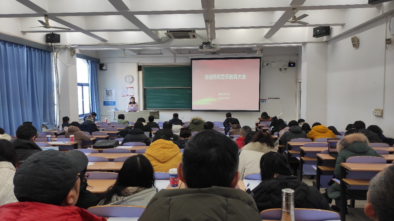 2023年12月21日下午,建筑与艺术学院召开了2023年工作总结会暨师德师风教育大会。学院全体教职工参加了会议,学院党委书记秦思阳主持会议。