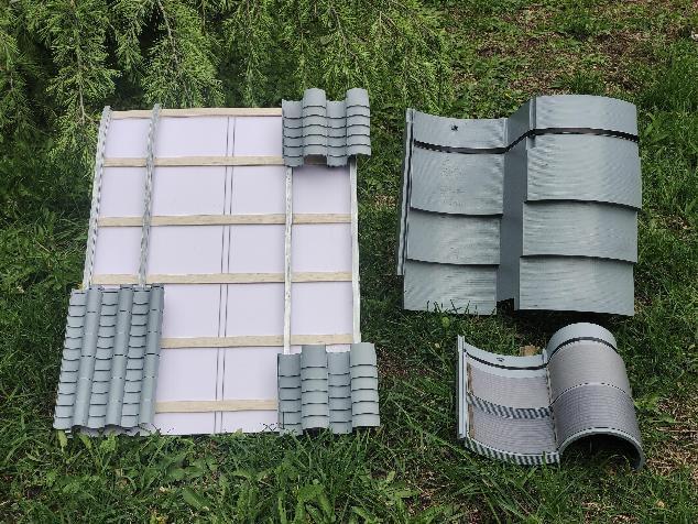 在2024年结题的30余个大创项目中,更是涌现出同学们积极思考,大胆探索的创新精神,不少项目已申请专利。《北京四合院低碳更新中屋顶光伏应用设计》通低碳更新中屋顶光伏应用设计项目着眼于双碳背景下的北京旧城改造,为加快北京市旧城低碳改造,运用薄膜光伏技术,结合四合院屋面瓦规制形态开展研究、设计和实验。共计产出合瓦、筒瓦、里弄瓦三种光伏屋面瓦系统和六项专利,解决了颜色、规制等外观问题和光伏瓦维修更换难的问题,实现更换便捷的效果,达到旧城改造和历史原貌的平衡。