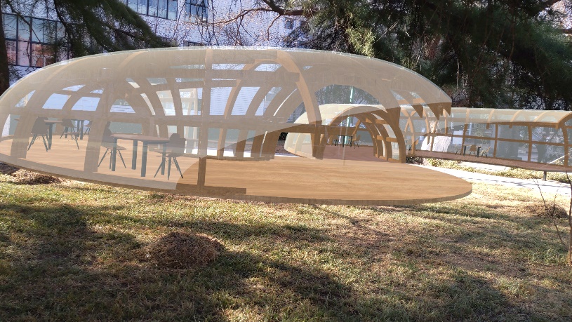 学院大创项目结合时代发展需求与前沿技术,完成成果较为扎实。在2023年立项项目中,《基于混合现实(MR)的设计方案实景化呈现与交互体验》项目借助Holosens2眼镜,研究MR的场景化空间,从而进行设计方案呈现与体验,并依据结果改进设计方案。MR技术(混合现实技术)可以让人走入基地真实环境,进行交互式的场景体验,在真实场景中呈现设计方案和体验交互操作,使其更具有真实感和沉浸感。通过设计家具的形式、连接方式,以及节点建设来完成家具模组的设计,从小尺度模型到大尺度构筑物甚至建筑等。