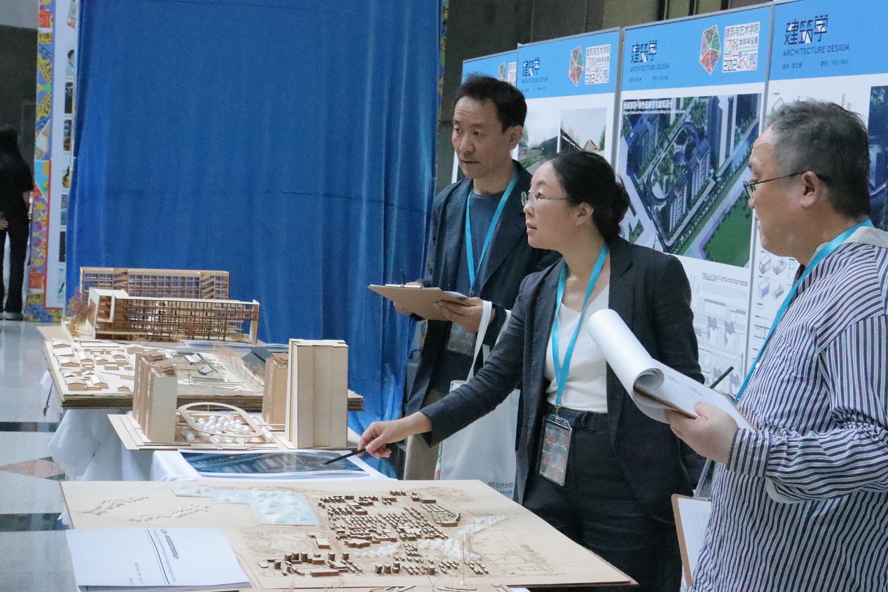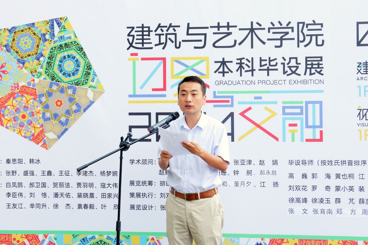 本科生院副院长景云为开幕式致辞,并代表本科生院预祝全体毕业生答辩顺利。他表示建筑与艺术学院每年的毕业设计展已经成为学校优秀的校园文化品牌活动,也是学校开启毕业季的一道亮丽风景。建艺学院发挥自身特色优势,通过毕业设计展、创意文化节等活动,落实立德树人,将美育通过多样的形式潜移默化融入师生心田,将“美”通过设计融入到经济发展、城乡建设及日常生活中,和全校师生一起,为建设美好的社会环境作出了积极贡献。