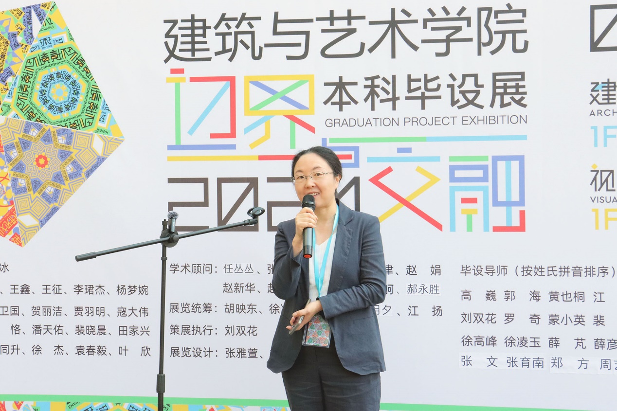 北京市市政工程设计研究院总院总建筑师,规划与建筑院院长赵新华作为答辩评审专家代表致辞。她对同学们完成优秀的毕设作品表示祝贺,也祝贺同学们圆满完成本科阶段的学习,祝愿同学们未来前程似锦。