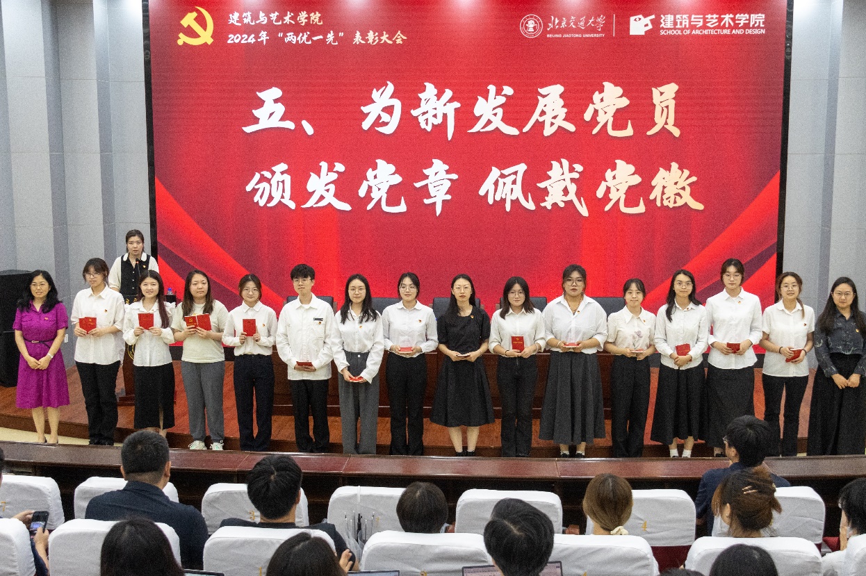 学院党委副书记刘萍宣读学院2024年“两优一先”表彰决定,授予设计系教师党支部李旭佳33名同志为“优秀共产党员”,授予机关党支部郝建芳等15名同志为“优秀党务工作者”,授予本科生第一党支部等4个党支部为“先进基层党组织”。学院党委书记秦思阳为获奖集体代表和个人颁奖。