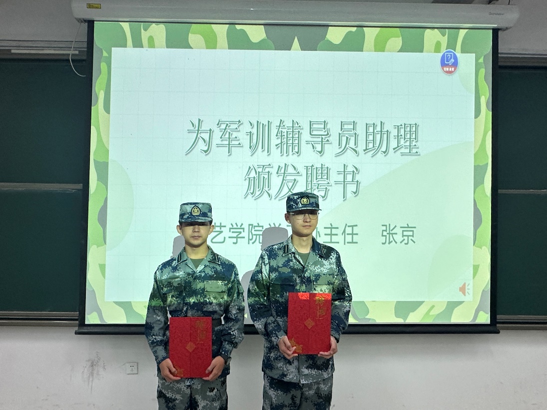 张京介绍了本次军训的辅导员助理,并未他们颁发聘书。