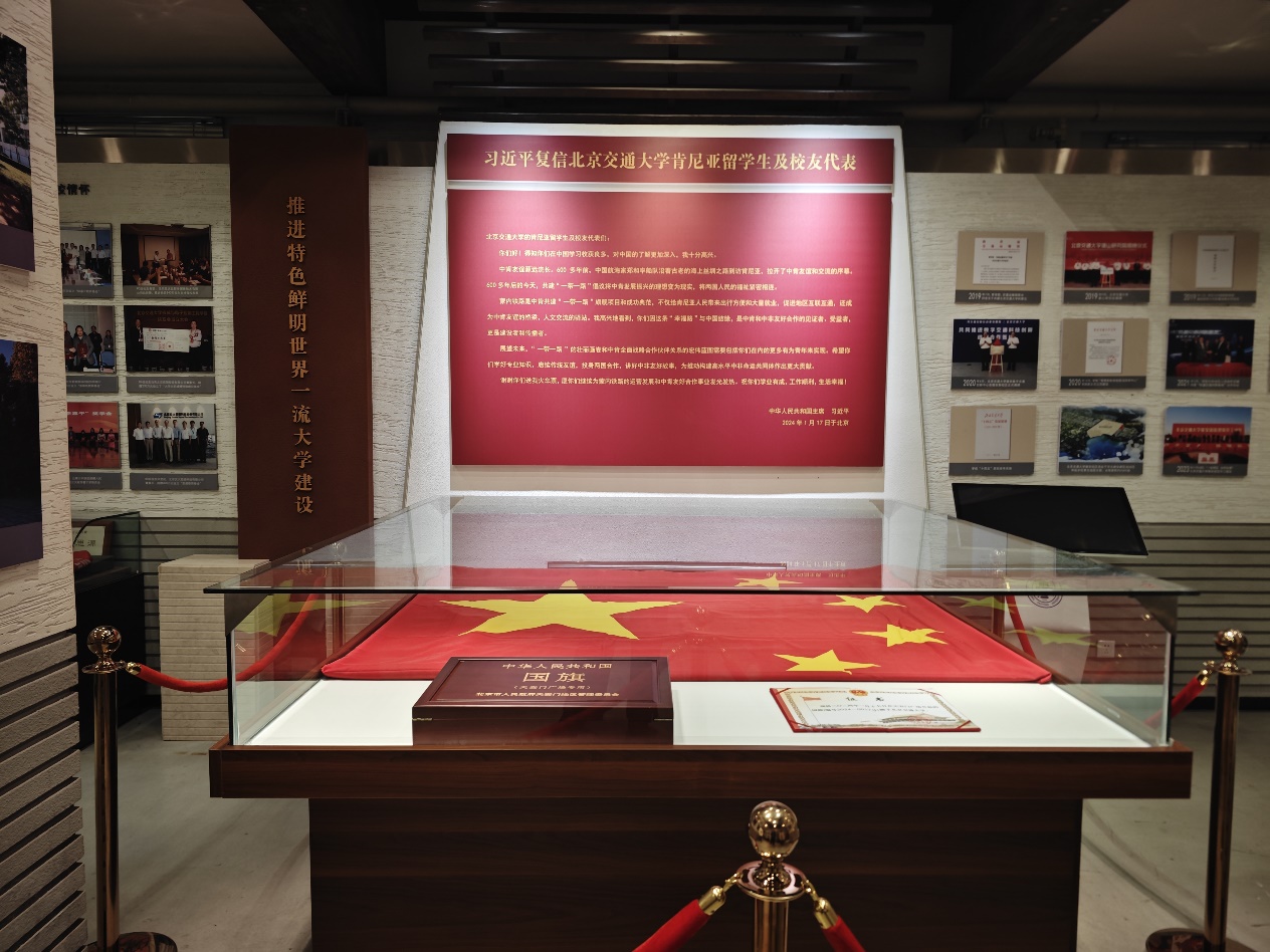 在参观过程中,教师党员还认真学习了习近平总书记给我校留学生的复信。习近平总书记在2024年1月17日复信,希望留学生们学好专业知识,赓续传统友谊,投身两国合作,讲好中非友好故事,为推动构建高水平中非命运共同体作出更大贡献。教师党员还有幸见到本月学校刚刚获赠的旗编号为2024-0017号天安门广场国旗,它曾在2024年1月17日高高飘扬在天安门广场,这一天对于交大人来说意义重大。