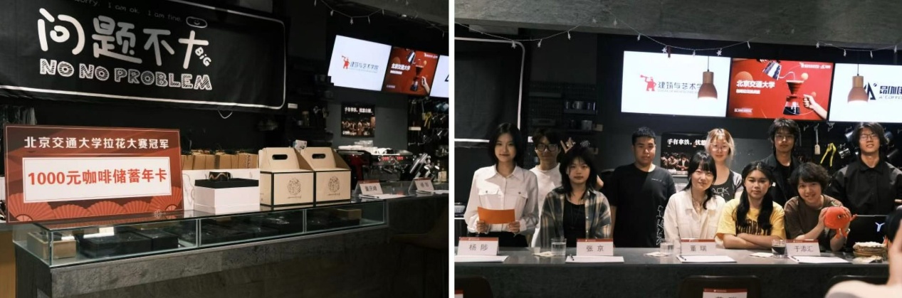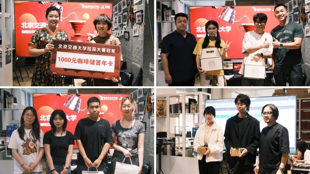活动现场咖啡香气氤氲,创意灵感迸发。赛事分为"咖啡雕花初赛"与"咖啡拉花决赛"两个环节,活动现场特别设置观众体验区,“银杏叶”“郁金香”“交大之心”在指尖绽放,极大提升了师生互动参与热情。最终产生"拉花大咖"1名,"拉花小咖"2名,"拉花迷你咖"3名等特色奖项,评委依次为参赛选手颁发奖品,鼓励同学们让创意之花开遍交大校园。