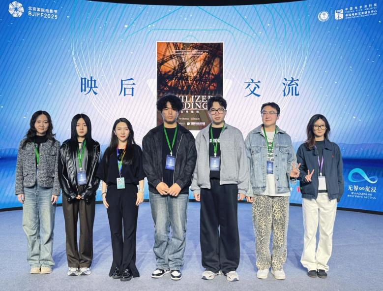 建筑与艺术学院师生积极探索多元传播手段在高端影像技术与艺术表达上实现跨界创新。学院设计系副教授易雨潇作为该展映策展人之一,在策展中贡献专业力量,2022级数字媒体艺术专业学生叶书华、李泽轩凭借环幕短片《文明编码》入围“致敬中国电影120周年:高校主题创作”单元。